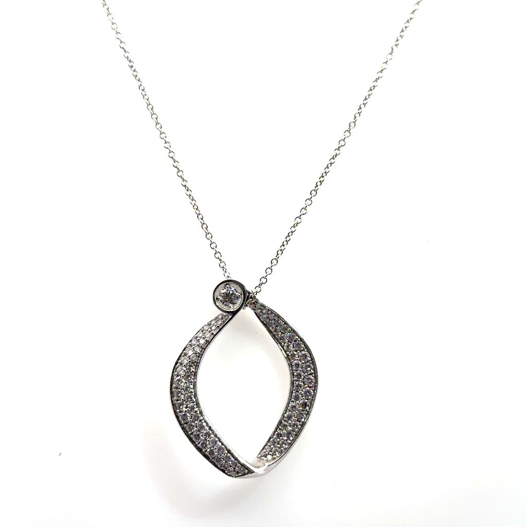 Simon GWhite gold ring with a total of 27 points of diamonds, central stone cubic zirconia, certificate included3615.00 $